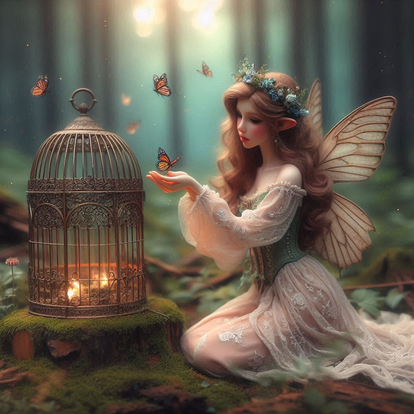 Perched gently on a mossy rock, the fairy gazes toward the forest’s edge, her colored pencil form softened by time and care, each stroke. Her tiny home glows behind her—twigs woven with love, petals arranged like blessings—and yet it’s the anticipation in her eyes that tells the story. She waits not out of loneliness, but out of devotion. Friendship, she knows, is the true enchantment: the laughter that echoes through leaves, the shared silences that feel like song. In this still moment, she reminds us that connection is a kind of magic, and that welcoming others into our world is the most beautiful spell of all.