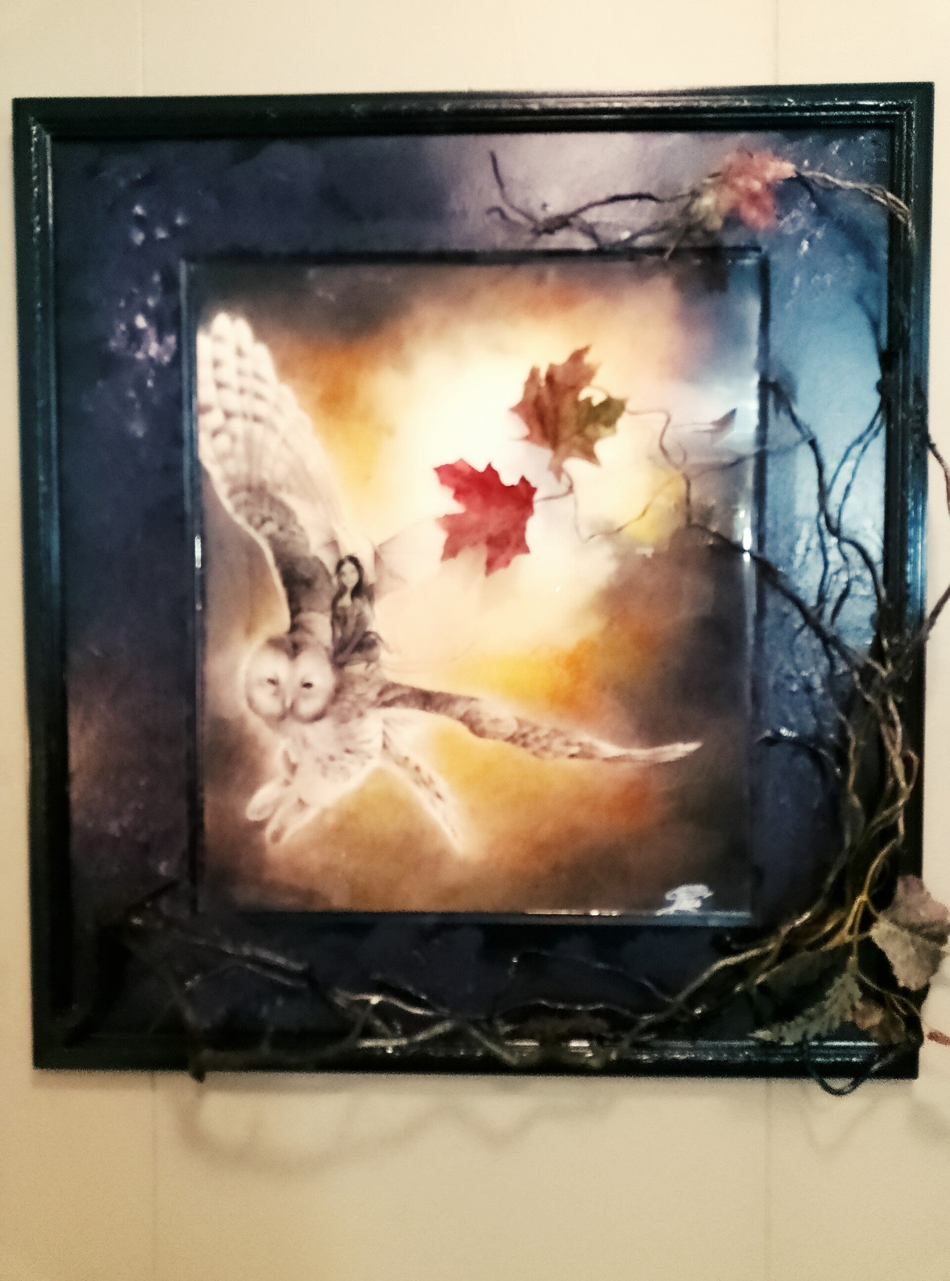 ✨ Fairy Riding Owl Original Art — Resin‑Sealed Mixed Media Wall Decor with Curly Willow Frame ✨